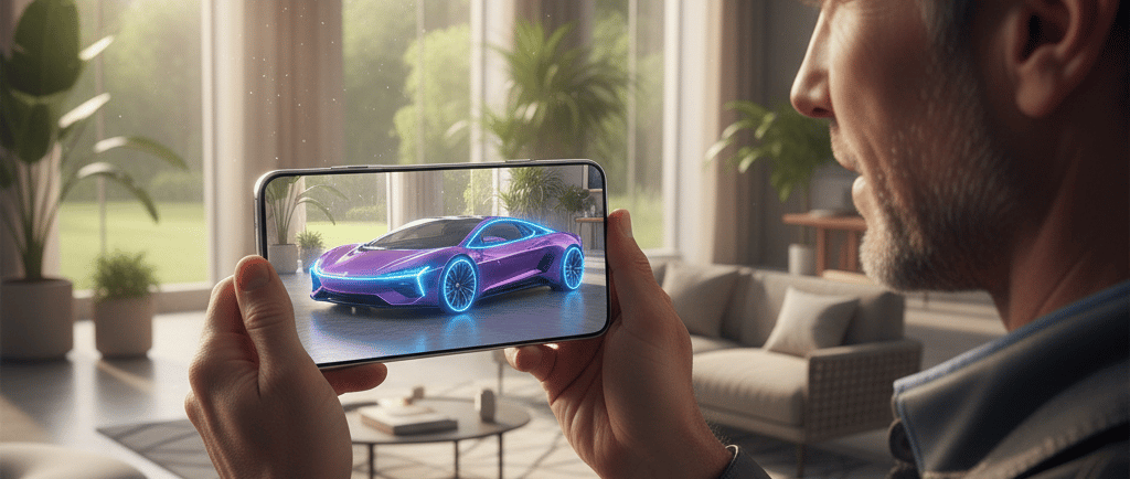 AR uses a combination of camera sensors, computer vision, and 3D tracking to recognize the physical world around you. Once it understands your environment, it places virtual content — like models, text, or animations — on top of real surfaces in real time.